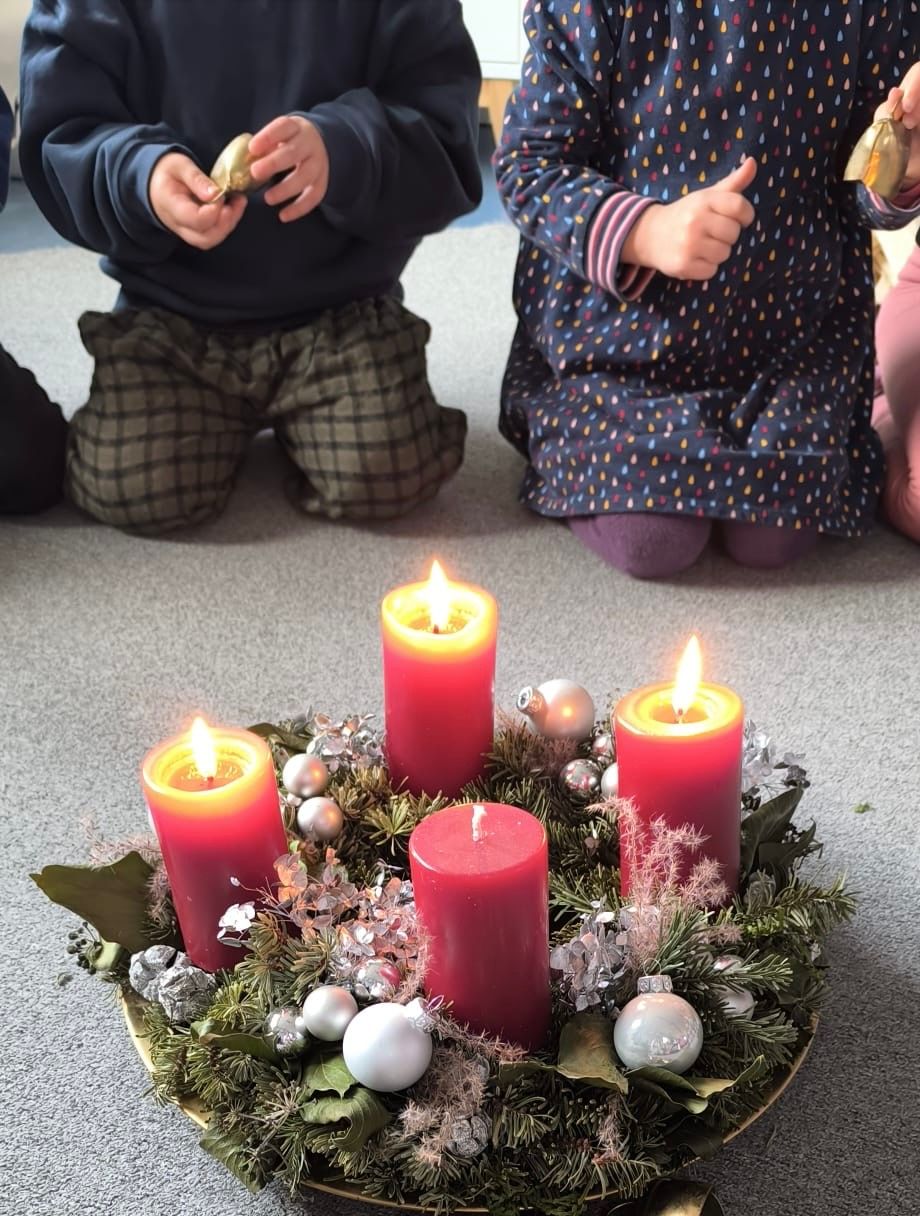 Es ist der dritte Advent und die festliche Vorfreude bei uns im Kindergarten ist spürbar. Heute brennt auch bei uns die dritte Kerze auf unserem Adventskranz.